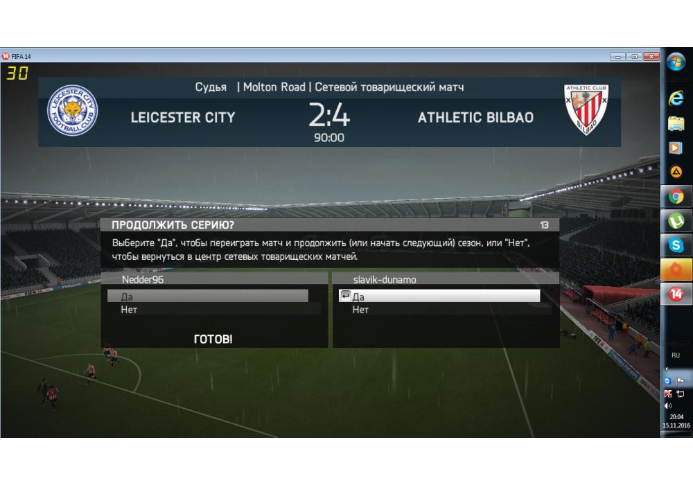 Athletic Bilbao vs Leicester City Чемпионат Первой лиги FIFA14 Игра заявлена 15 Ноября 2016 (#479089) | ||||||||||||||||||||||||||||||||||