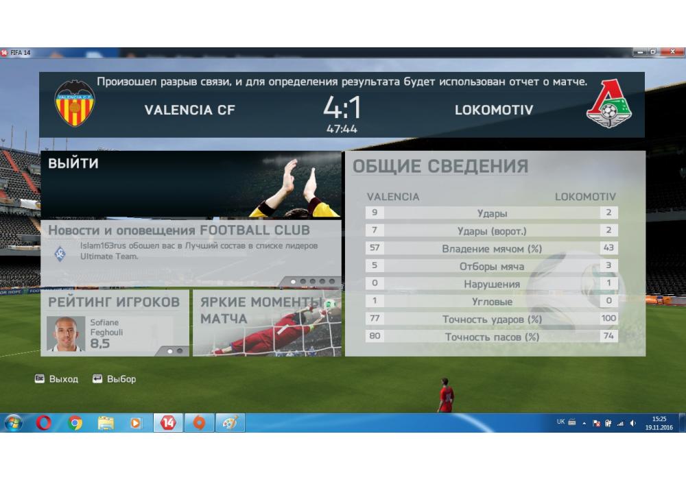 Valencia CF vs Lokomotiv Moscow Чемпионат Первой лиги FIFA14 Игра заявлена 19 Ноября 2016 (#480593) | ||||||||||||||||||||||||||||||||||