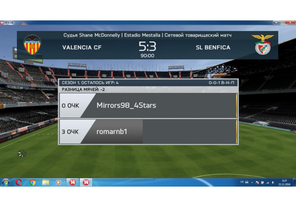 Valencia CF vs SL Benfica Лига чемпионов FIFA14 Игра заявлена 21 Ноября 2016 (#481298) | ||||||||||||||||||||||||||||||||||