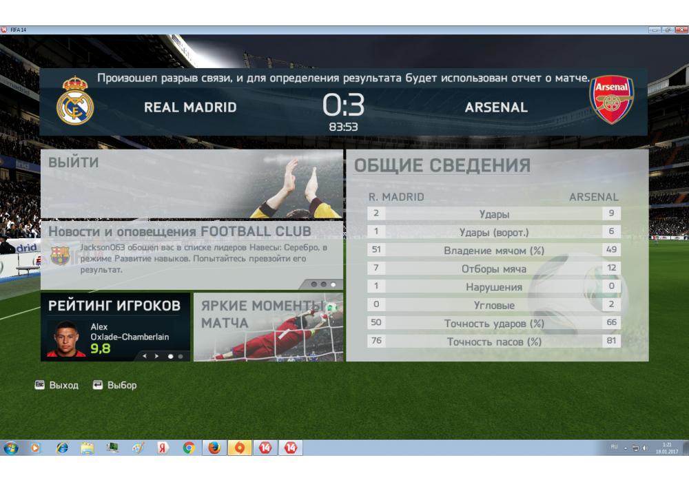 Arsenal vs Real Madrid Чемпионат Премьер лиги FIFA14 Игра заявлена 18 Января 2017 (#500037)