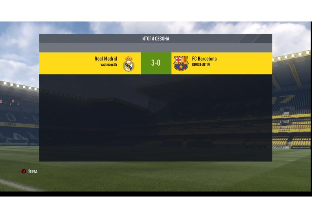 Real Madrid vs FC Barcelona Open Ladder 1х1 4Stars FIFA17 PС Игра заявлена 7 Февраля 2017 (#507519) | ||||||||||||||||||||||||||||||||||