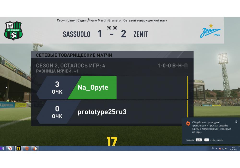 Zenit St. Petersburg vs Sassuolo Кубок чемпионата PC Игра заявлена 8 Мая 2017 (#531730) | ||||||||||||||||||||||||||||||||||