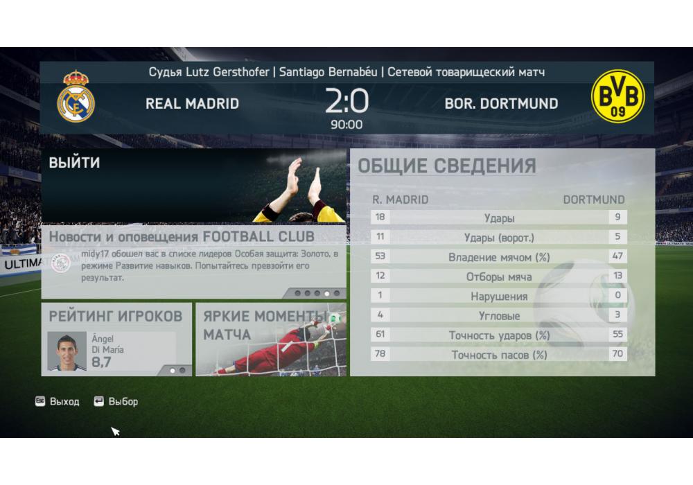 Real Madrid vs Borussia Dortmund Fast Cup 4stars FIFA14 PC (14 мая) Игра заявлена 14 Мая 2017 (#533243) | ||||||||||||||||||||||||||||||||||