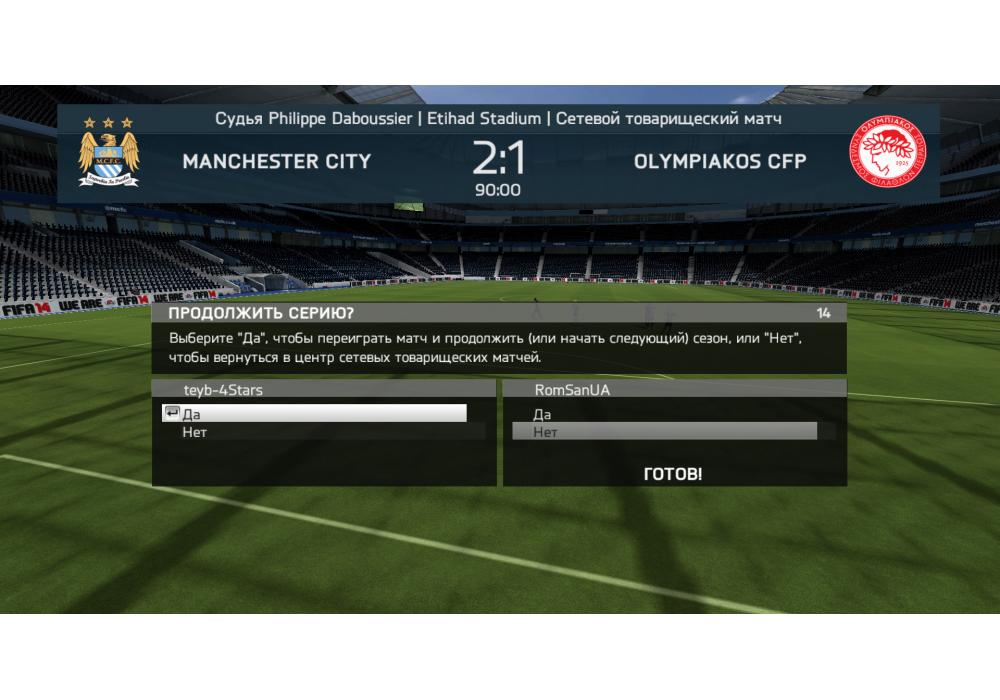 Manchester City vs Olympiakos FP Open Ladder 1х1 4Stars FIFA14 PС Игра заявлена 27 Мая 2017 (#536836) | ||||||||||||||||||||||||||||||||||