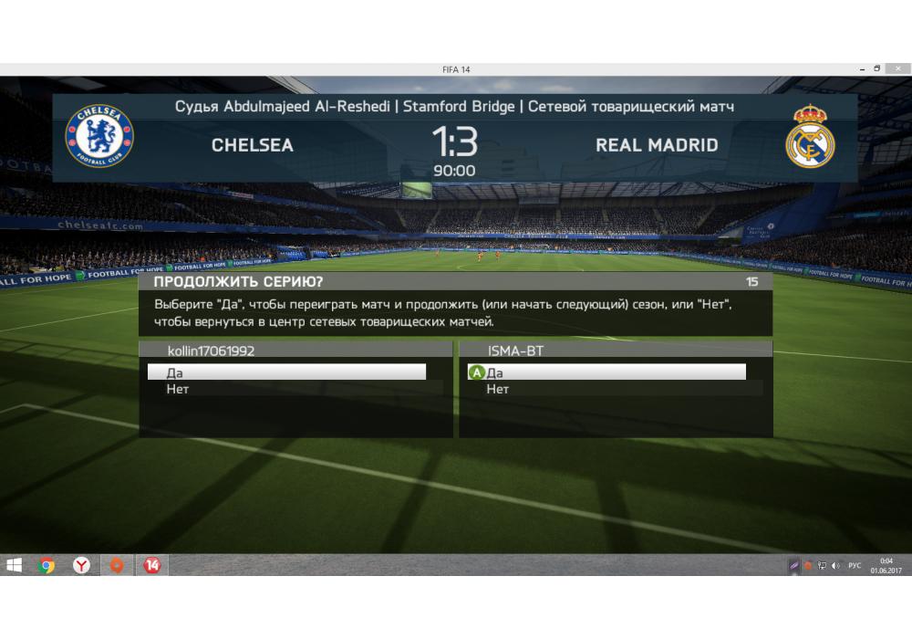 Real Madrid vs Chelsea Open Ladder 1х1 4Stars FIFA14 PС Игра заявлена 31 Мая 2017 (#537647) | ||||||||||||||||||||||||||||||||||
