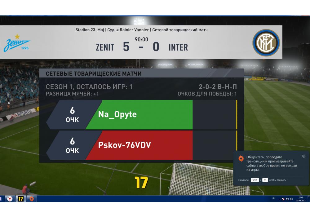 Zenit St. Petersburg vs Inter Чемпионат Второй лиги PC Игра заявлена 3 Июня 2017 (#538413) | ||||||||||||||||||||||||||||||||||