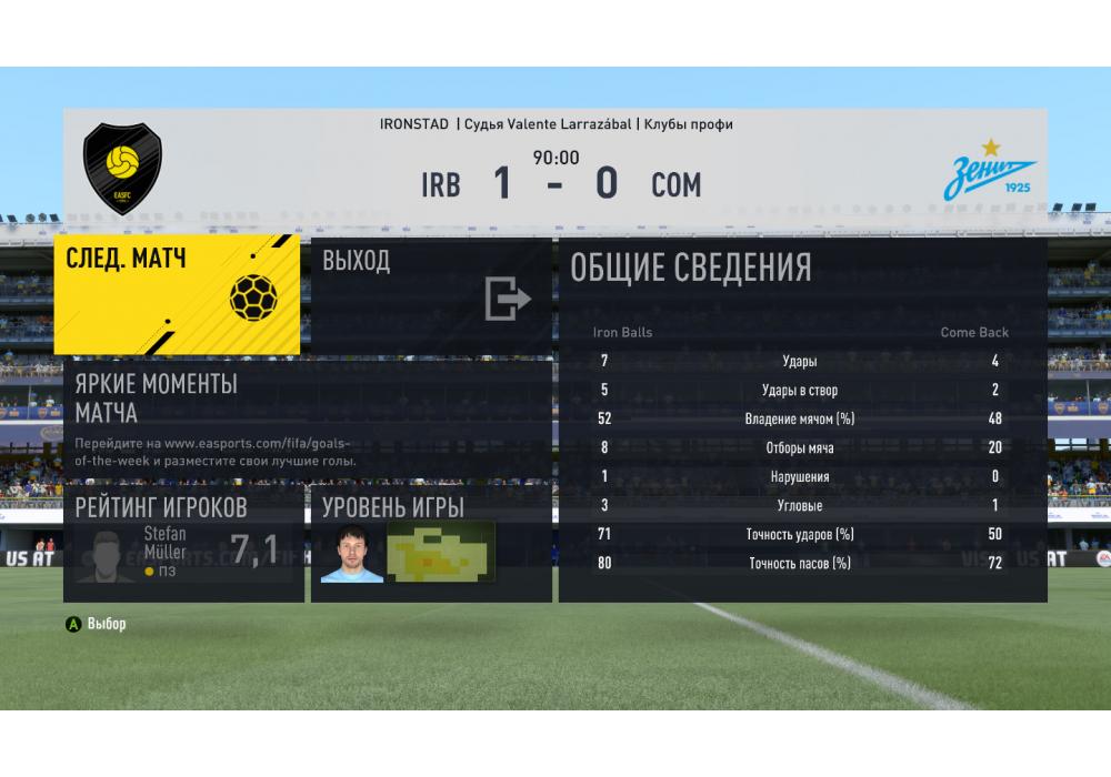 Iron Balls vs Come Back Вторая лига Pro club 4Stars FIFA17 PC (режим профи) Игра заявлена 19 Июня 2017 (#543187)
