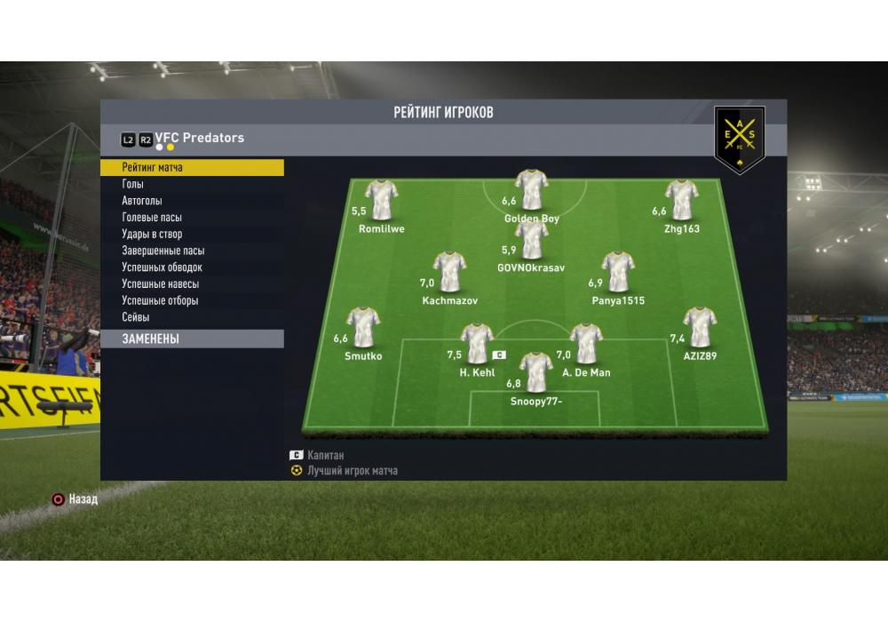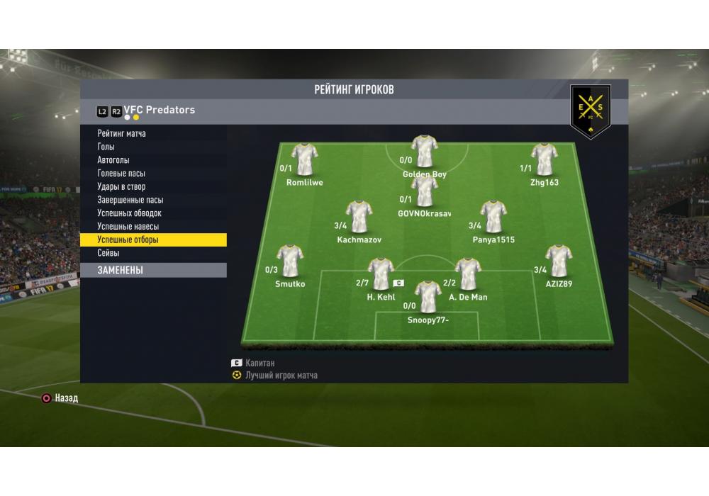 Лучший игрок матча Bloodydog163Вратарь сухого матча: Andrey-Alekseev[vk]