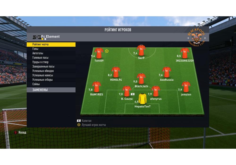 FC Element vs BK TAHK Кубок чемпионата Pro clubs 4Stars FIFA17 PС (режим профи) Игра заявлена 3 Июля 2017 (#545203)