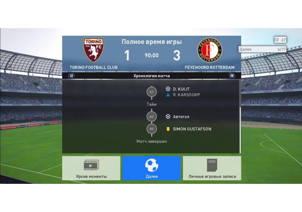FC Union vs FC HAWKS Премьер лига 11х11 4Stars PES17 PC (режим профи) Игра заявлена 18 Июля 2017 (#549401)
