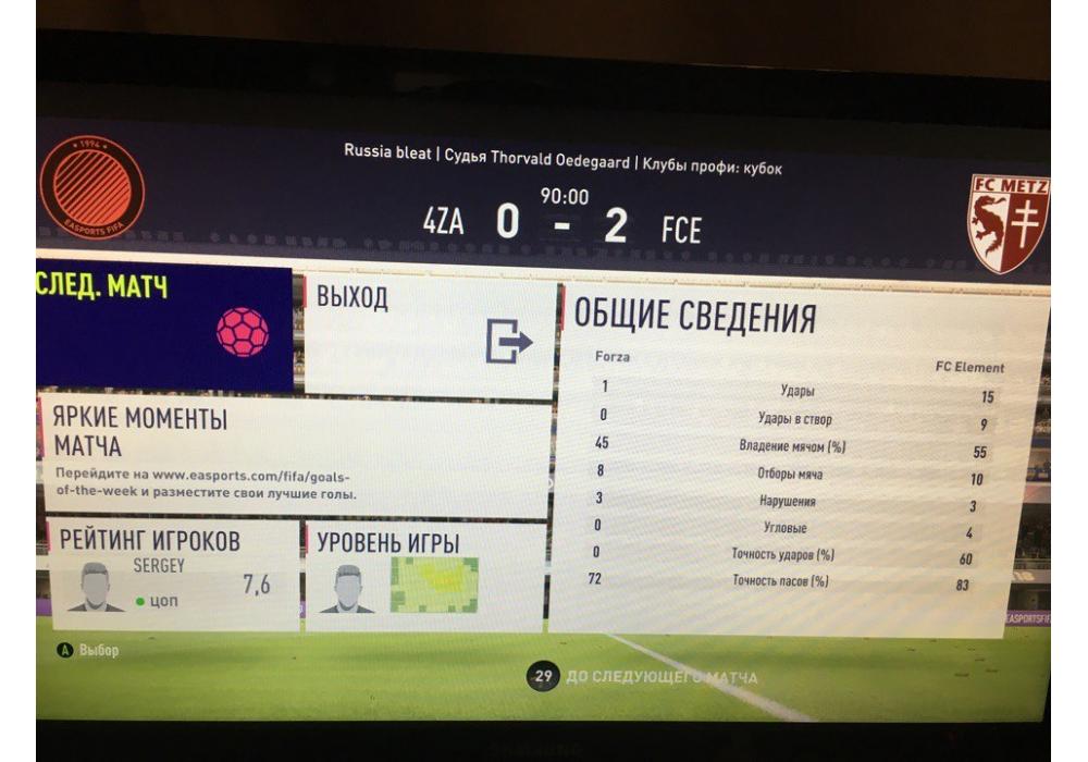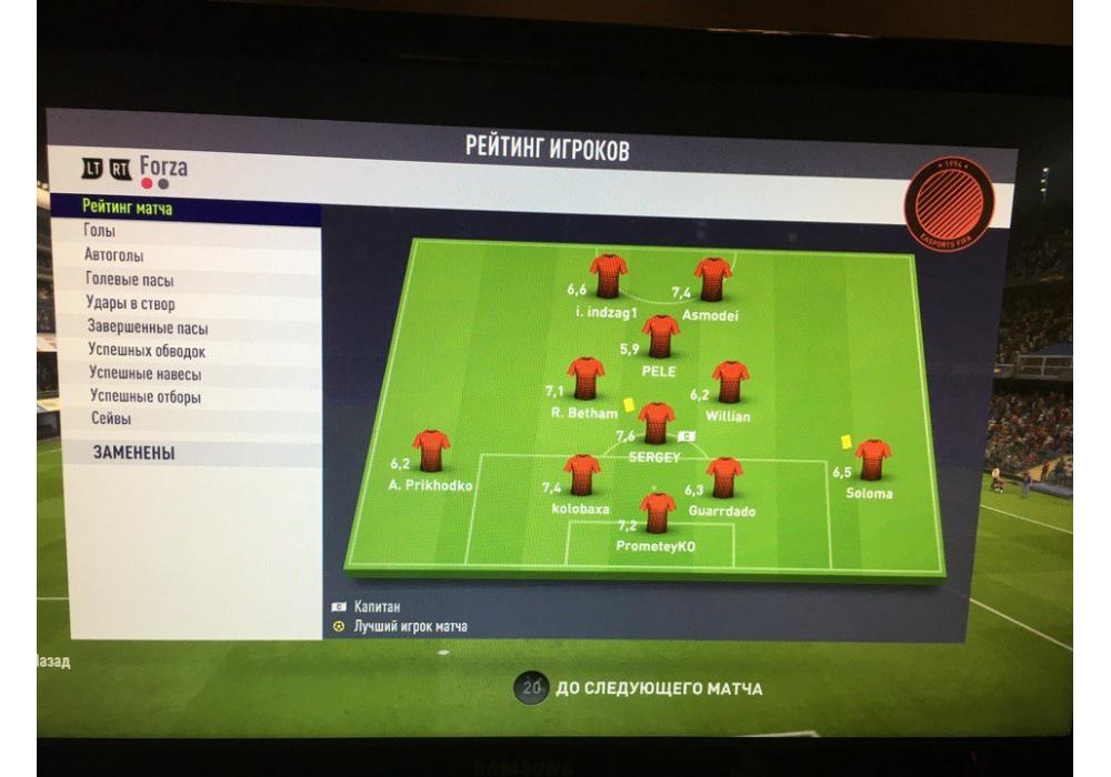 Лучший игрок матча SERGEY_FORZAВратарь сухого матча: Hepa6OTaeTHexy9I