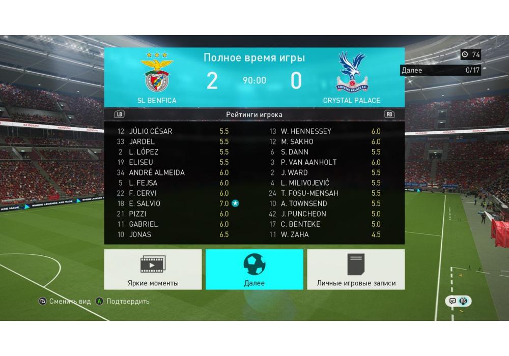 USSR vs Sokol Премьер лига 11х11 PES18 PC Осн. чемпионат (режим профи) Игра заявлена 9 Ноября 2017 (#567647)