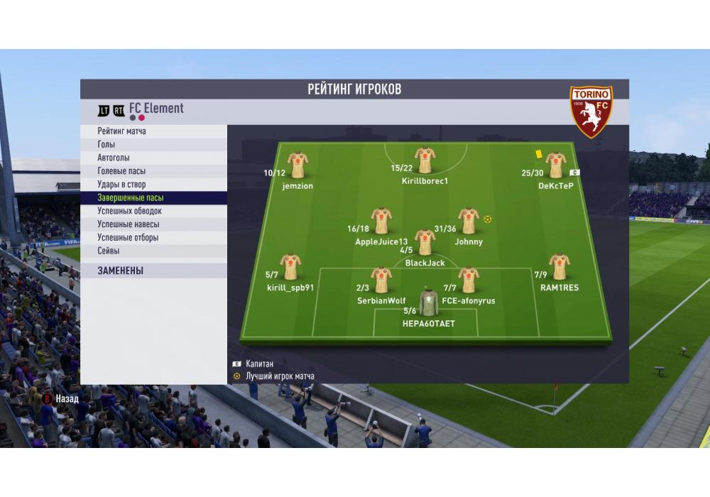 Лучший игрок матча -FCE-JohnnyВратарь сухого матча: Hepa6OTaeTHexy9I