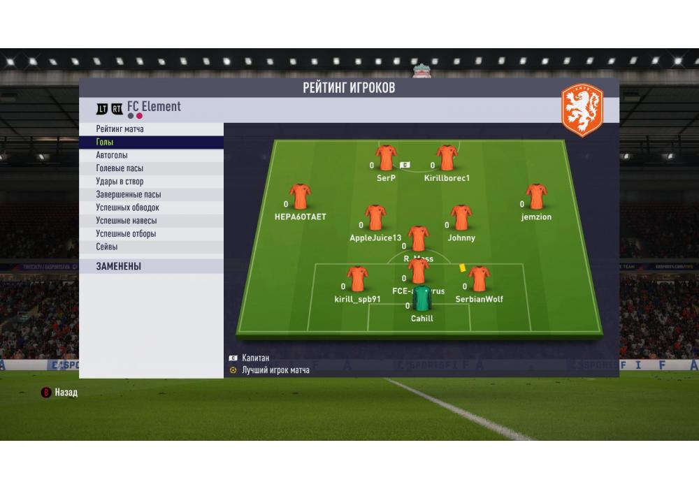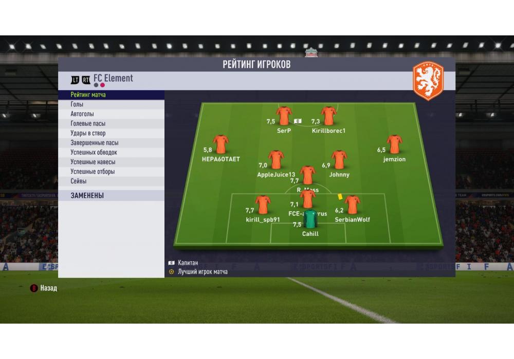 FC KyJle69lku vs FC Element Премьер лига Pro чемпионат (режим профи) Игра заявлена 30 Ноября 2017 (#573099)
