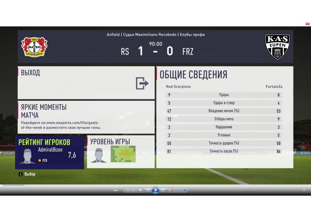 Лучший игрок матча AdmiralBizonВратарь сухого матча: FCO_OrenStyle56
