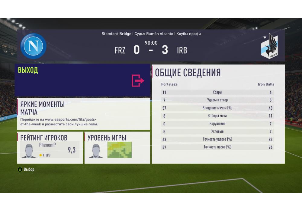 Лучший игрок матча PhenomFXВратарь сухого матча: LexLuther