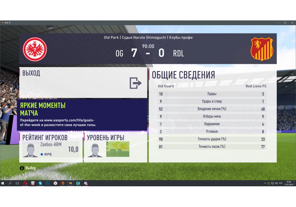Old Guard vs Red Lions F.C. Премьер лига Pro чемпионат (режим профи) Игра заявлена 21 Января 2018 (#582489)