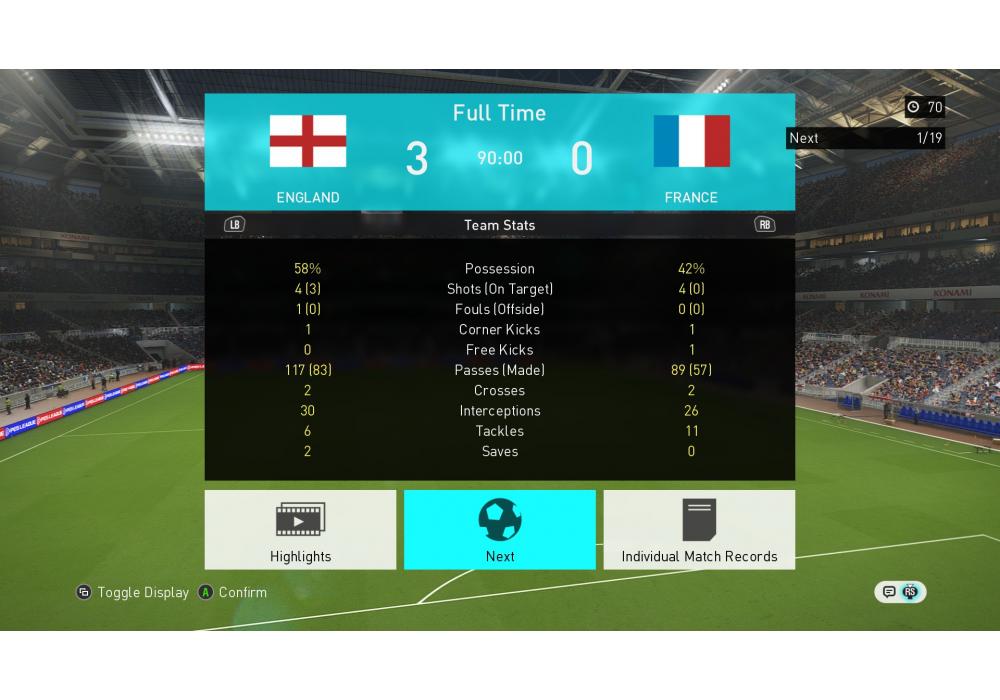 Mancorros™ vs USSR Премьер лига 11х11 4Stars PES18 PC Основной чемпионат (режим профи) Игра заявлена 6 Марта 2018 (#591629)