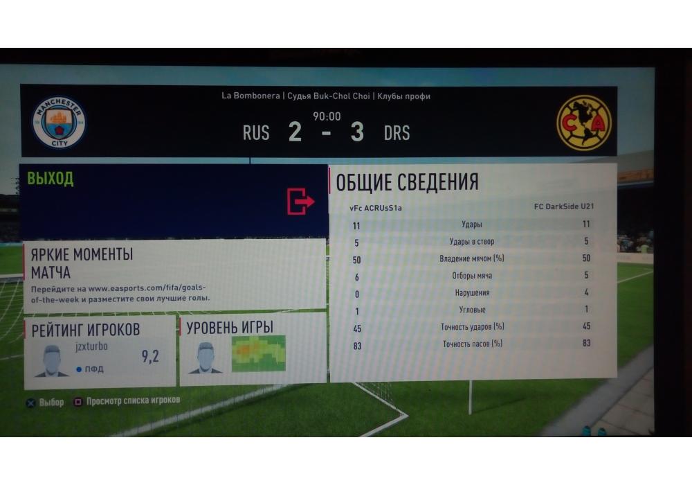 FC DarkSide U21 vs VFC ACRUSSIA RU Летний Кубок FIFA18 PS4 Pro clubs 4Stars (режим профи) Игра заявлена 20 Августа 2018 (#619018)