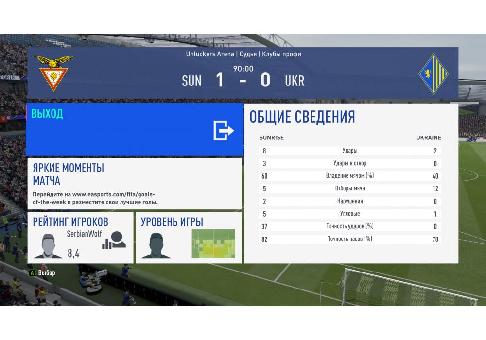 SUNRISE vs UKRAINE Премьер лига Pro clubs 4Stars (режим профи) Игра заявлена 3 Марта 2019 (#644476)