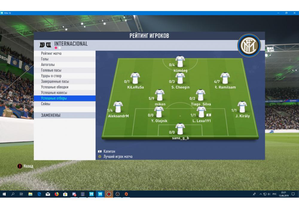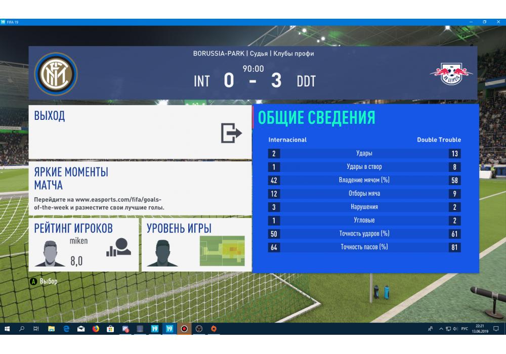 DoubleTrouble vs Internacional Премьер лига Pro clubs 4Stars (режим профи) Игра заявлена 13 Июня 2019 (#660271)