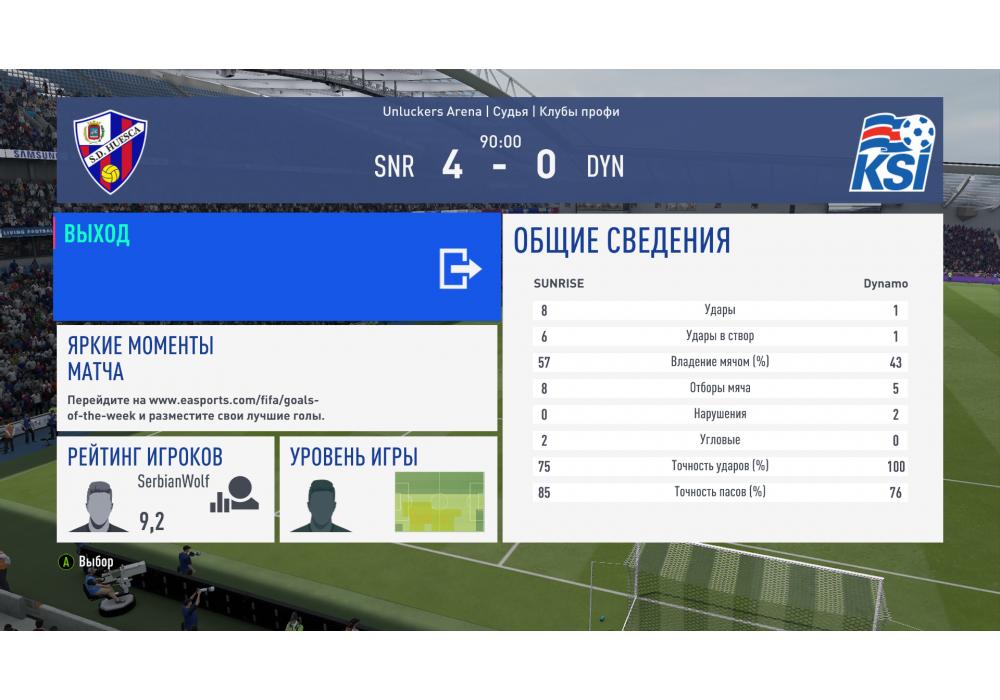 SUNRISE vs Dynamo Премьер лига Pro clubs 4Stars (режим профи) Игра заявлена 17 Июня 2019 (#660697)