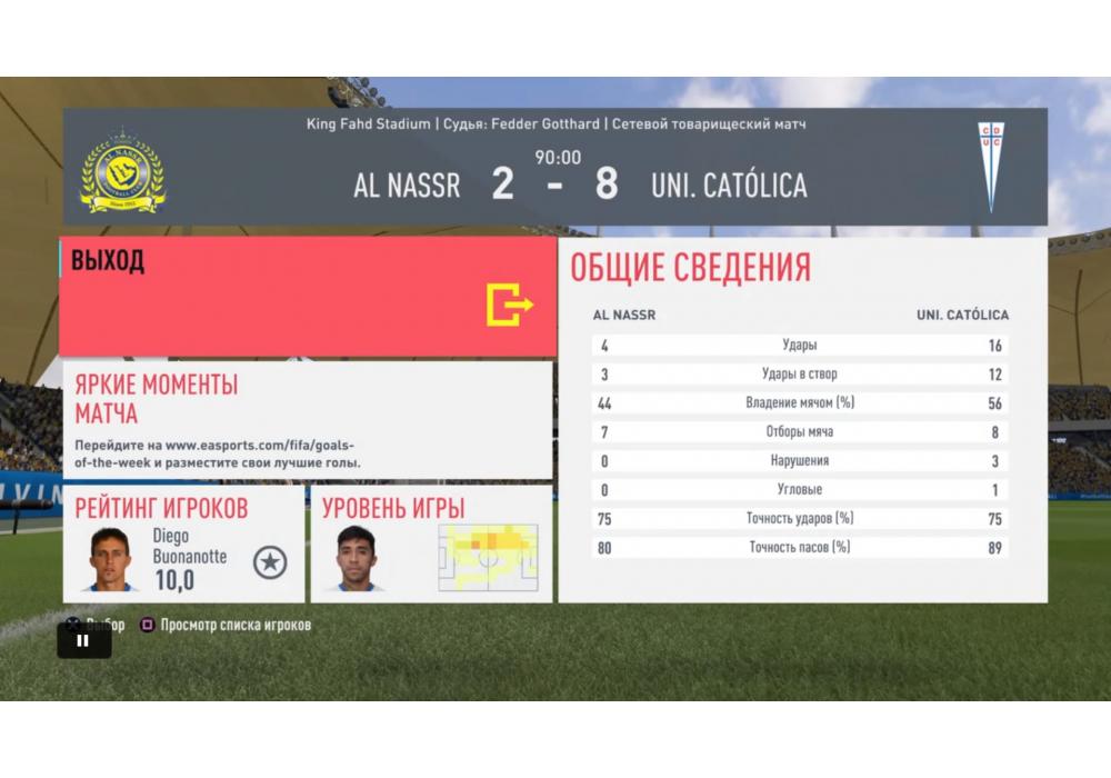 Universidad Católica vs Al Nassr Турнир+ UWL FIFA20 PS4 Игра заявлена 24 Марта 2020 (#691261) | ||||||||||||||||||||||||||||||||||