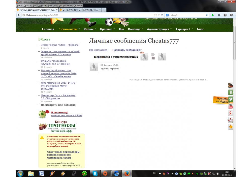Cheatas777 vs superwinner9292 турнир FIFA World Cup-8 4Stars Игра заявлена 2 Марта 2014 (#99954) | ||||||||||||||||||||||||||||||||||